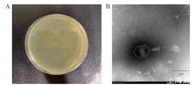 A:噬菌體形態(tài);B:透射電鏡形態(tài)