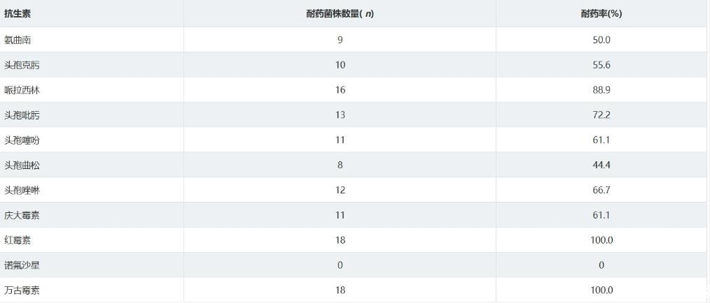 1.腸炎沙門菌的耐藥性分析:以18株腸炎沙門菌作為宿主菌分離噬菌體,它們均為多重耐藥菌株,對11種抗生素的耐藥性見表1。